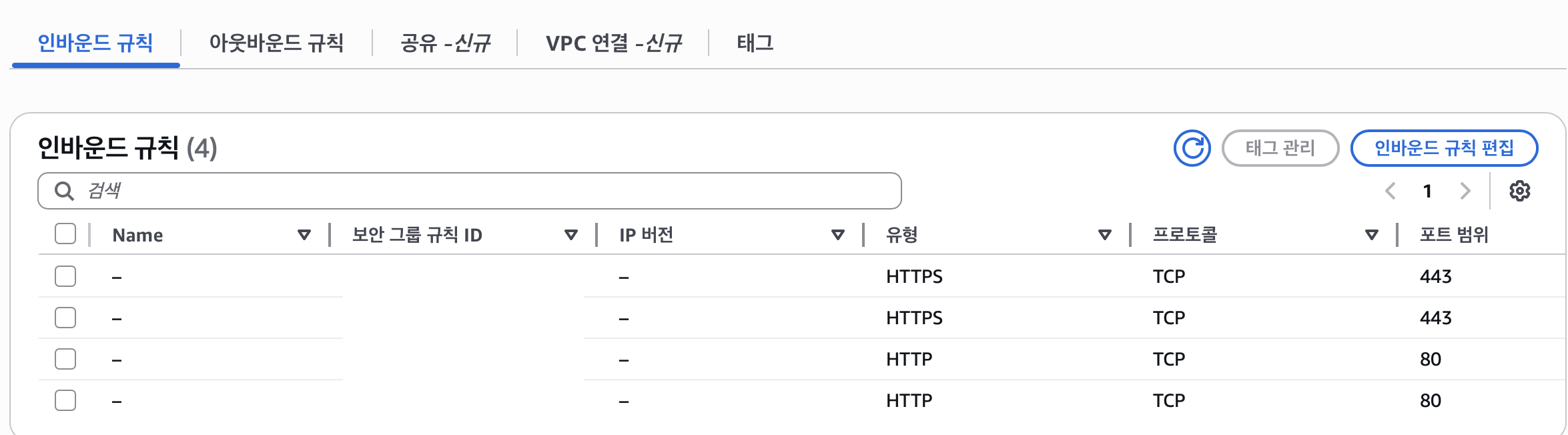 EC2 ALB ์ธ๋ฐ์ด๋, ์์๋ฐ์ด๋ ๊ท์น ์์